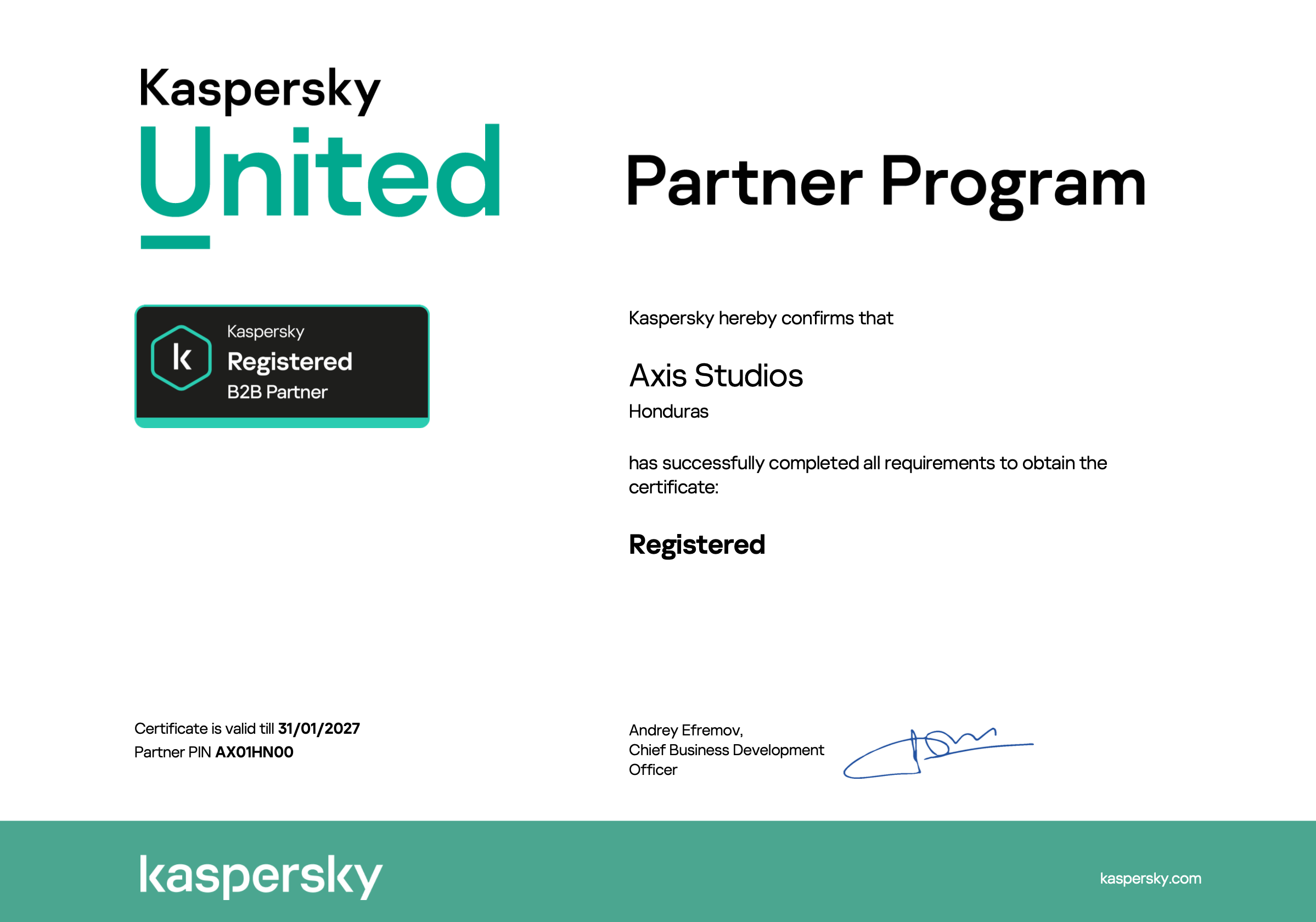 Somos partners oficiales de Kaspersky, garantizando soporte directo, licencias genuinas y la mejor asesoría técnica para tu empresa.